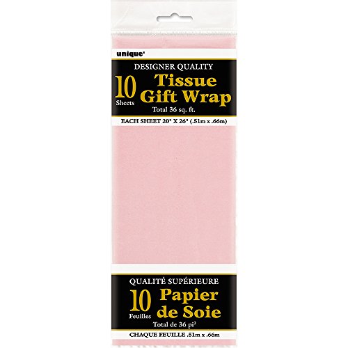 Unique Party - Fogli di Carta Velina Colore Rosa Confetto, Confezione da 10, 6288