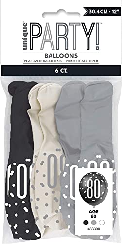 Unique Party- Palloncini in Lattice per Il 80° Compleanno-30 cm-Compleanno Glitz Nero e Argento-Confezione da 15, Black & Silver, 83390