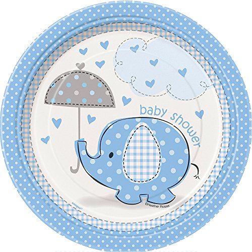 Unique Party- Piatti di Carta Umbrellaphants Blue Baby Shower, Colore Blu, 7" Diameter, 41695