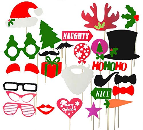 Confezione da 27 pezzi più nuovo di design: grande varietà di ornamenti per foto. Sono super divertenti e questa semplice cabina fotografica fai-da-te è perfetta per ogni occasione. Porta un grande divertimento a feste di Natale e riunioni di famiglia, ecc.