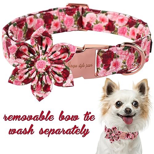 Unique style paws Collare per cani con fiore, rosso rosa peonia, collare per cani, comodo cotone, per ragazzi e ragazze, con fibbia in metallo, XS, collo 8-12 in