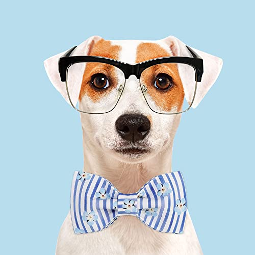 Unique style paws Collare per cani con papillon a strisce blu e fiori, comodo e morbido papillon collare per cani di piccola taglia media taglia L