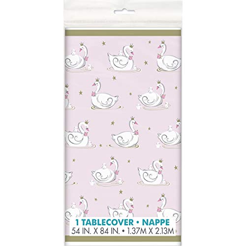 Unique- Tovaglia di Plastica-2,13 m x 1,37 m-Festa di Compleanno del Cigno, Multicolore, 78363