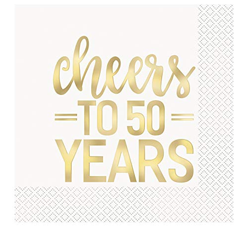 Unique- Tovaglioli di Carta-16,5 cm-Cheers to Years 50° Anniversario-Lamina d'oro-Confezione da 16, Multicolore, 72571