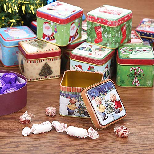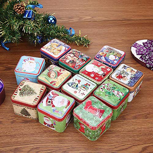 Unique Welinks - 12 scatole di latta natalizie per caramelle, dolcetti, biscotti, cioccolatini, caramelle, decorazioni natalizie A