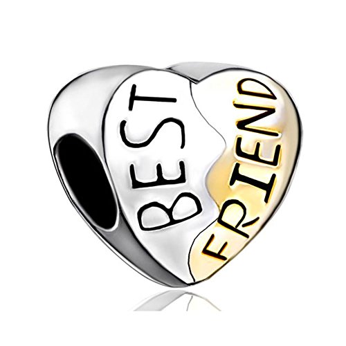 Uniqueen Ciondolo tipo charm con cuore dell'amicizia e scritta “Best Friend”, in argento, si adatta a braccialetti con ciondoli tipo charm