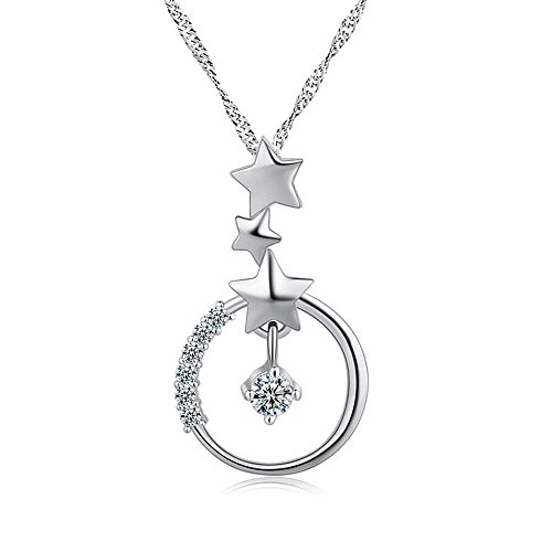 Uniqueen - Collana con ciondolo a forma di stella, in argento Sterling, 45 cm, regalo da donna e Argento, cod. KSEB_A117_PD31