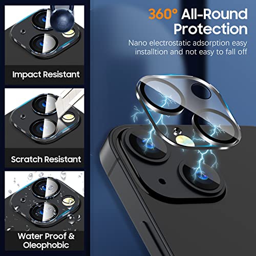 UniqueMe [5 Pezzi] Compatible con iphone 13 Vetro Temperato, 2 Pezzi Pellicola Protettiva e 3 Pezzi Pellicola Fotocamera, Con Cornice di Installazione,Senza Bolle