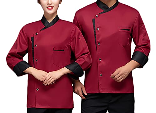 XWCG Unisex Giacca da Cuoco da Uomo Traspirante da Cucina Uniforme Cucina da Donna A Maniche Lunghe con Tasche E Bottoni Giacca Cuoco Uomo E Donna,Rosso,4XL