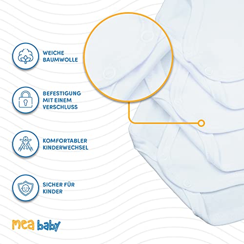 MEA BABY Body unisex a maniche corte in 100% cotone, confezione da 5 pezzi, colore bianco, per ragazze, body bianco, bianco, 18 mesi