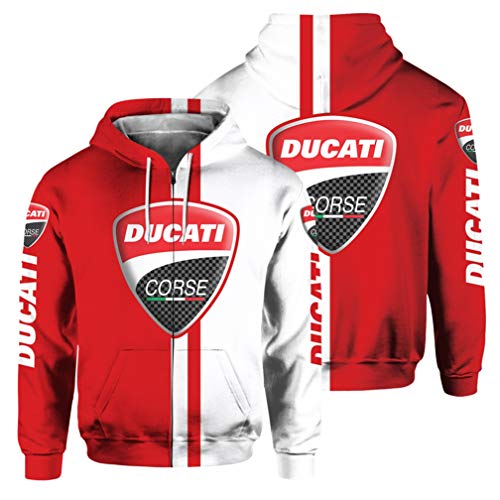 Unisex Primavera e Autunno Maniche Lunghe Capispalla 3D Digitale Ducati Logo Stampato Cerniera Felpa Casual, 1, XXXXL