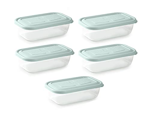 Unishop - Set di 5 contenitori in plastica per alimenti, privi di BPA, adatti per microonde, congelatore e lavastoviglie, colori pastello (verde, 600 ml)
