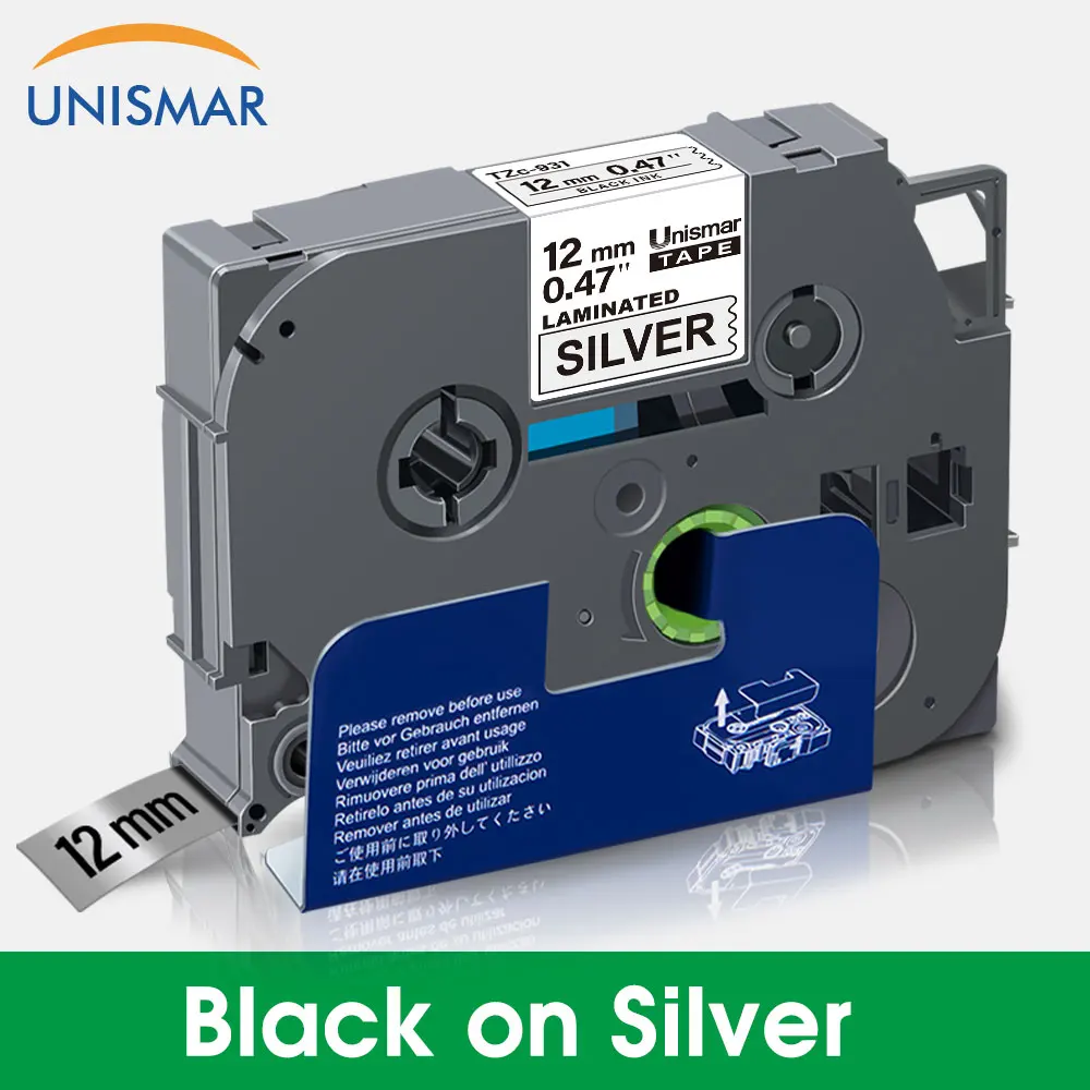 Unismar for 931 Brother 931 12mm Laminated Label Tape Black on Silver Ribbon Compatible for Brother Label Maker PT-E105 PT-E110