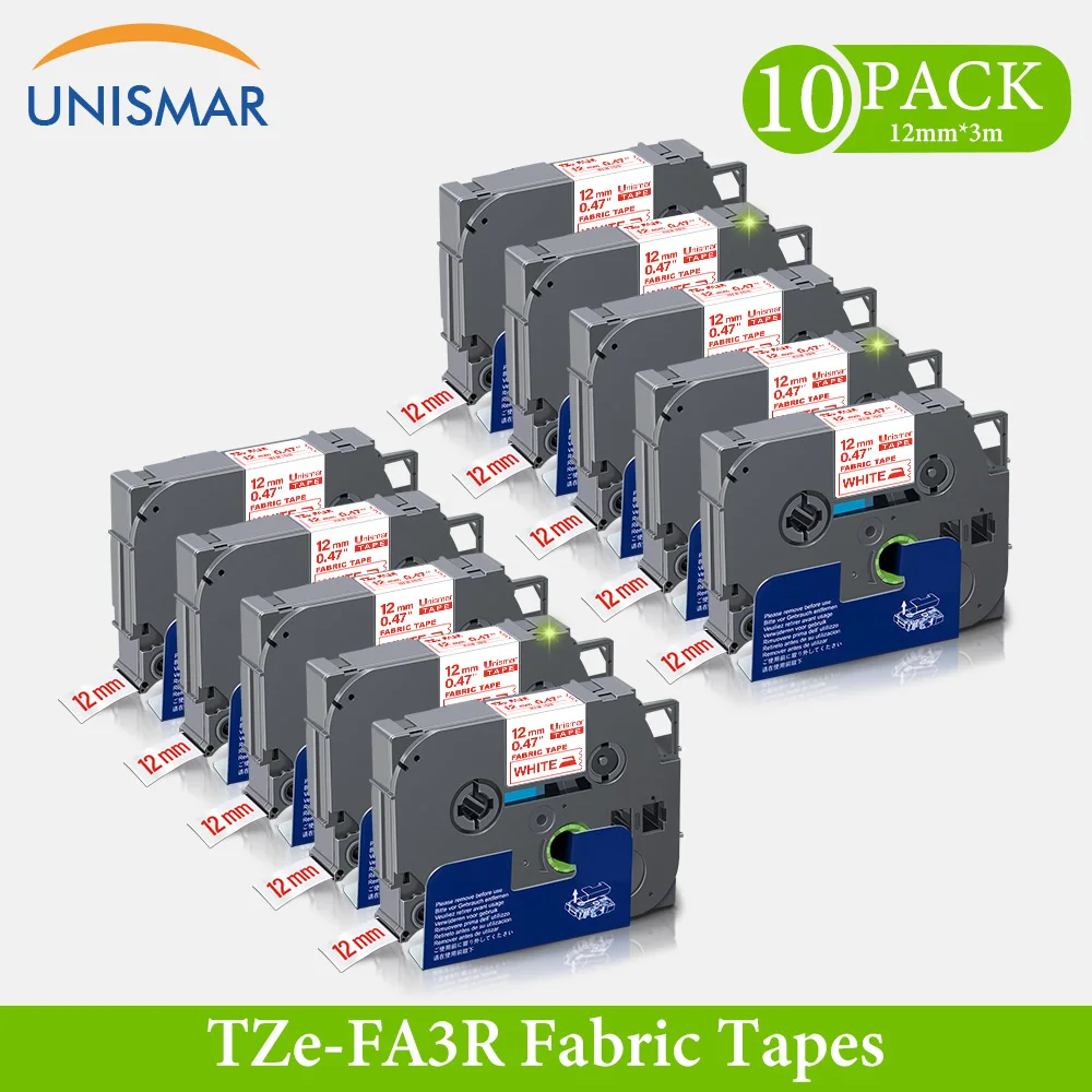 Unismar Fabric Tapes TZe-FA3R TZeFA3R for Brother TZe Tape P-touch Printer 12mm Black on White Fabric Iron on Cloth Label Tapes