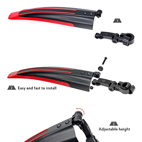 Facile da installare e rimuovere: facile da montare (assicurarsi che la forcella anteriore abbia un foro, il reggisella è un tubo circolare). Con i nostri parafanghi è possibile regolare l'angolo tra parafango e pneumatici della bicicletta in modo flessibile, senza la necessità di attrezzi di riparazione