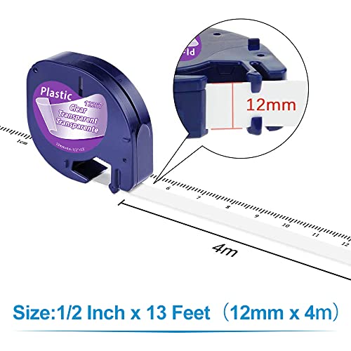 Unistar Compatibile Dymo 12267 LetraTag Plastica 12mm x 4m Nero su Trasparente Nastro per Etichette, Ricarica Dymo Etichettatrice Letratag 100H LT100T XR