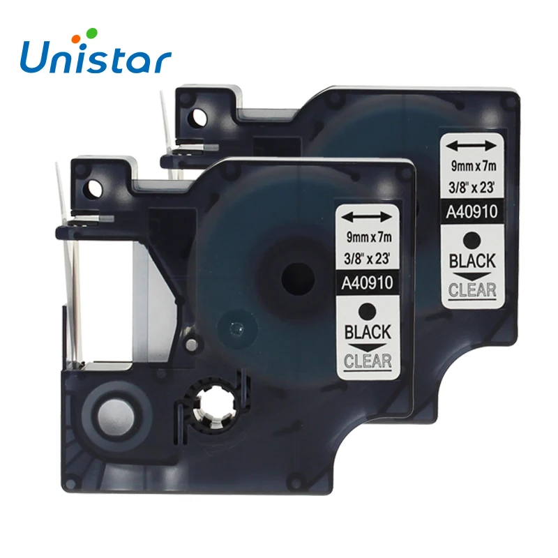 UNISTAR 2 PCS Compatible Dymo Label Tape 9mm Black On Clear 40910 Label Printer Ribbon For Dymo D1 Label Maker S0720670
