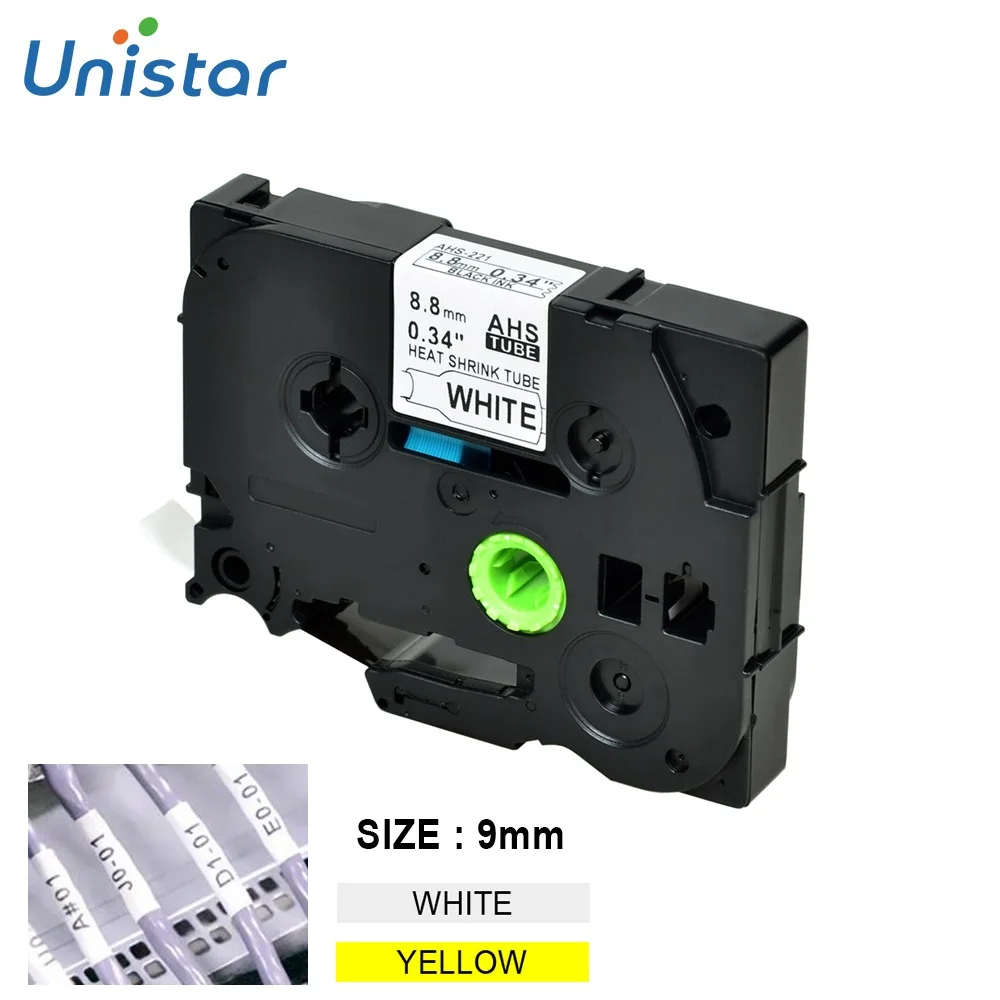 Unistar HSe-221 Label Tape 9mm Compatible for Brother Label Printer Heat Shrink Tube 8.8mm X 1.5m Black on White HSE221 HSE621