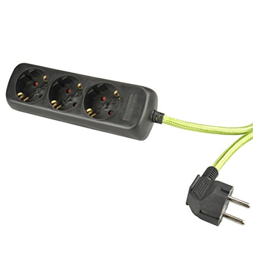 Unitec 445688 TSD-Cavo in Tessuto KiSi a 3 Prese, 1,4 m, Colore, Nero/Verde, 1