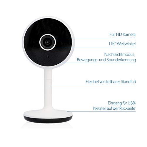 Unitec Telecamera di sorveglianza intelligente WiFi, Full HD, rilevamento di movimento e rumore, funzione visione notturna, 1 pezzo (confezione da 1)