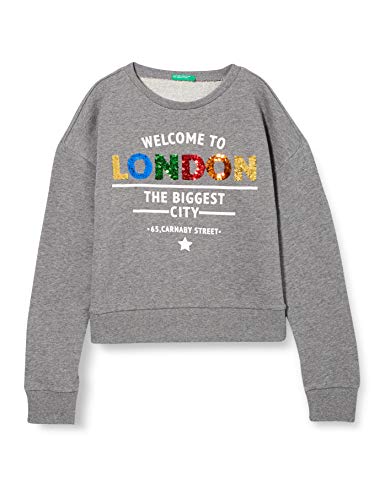 United Colors of Benetton 3J68C14UF Felpa con Cappuccio, Grigio Scuro 507, XL Bambina