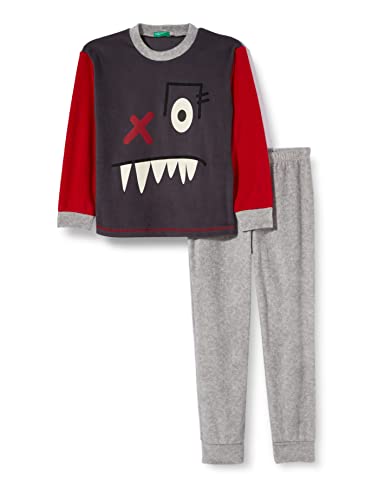 United Colors of Benetton Pig(Maglia+Pant) 3DFQ0P2FD Set di Pigiama, Grigio Scuro 041 + Rosso + Grigio Melange, S Bambino