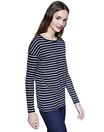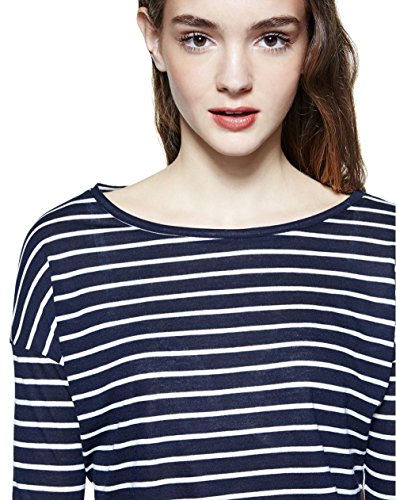 United Colors of Benetton Stripe Crew Neck T-Shirt, Blu (Navy), Medium Donna