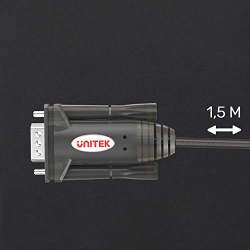 UNITEK Y-1105K - Convertitore USB C a seriale RS-232, cavo 1,5 m, interfaccia seriale, HotPlug, compatibile con Windows Server 2003, Server 2008, Linux, nero