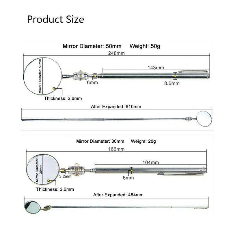 Universal Automotive Maintenance Inspection Mirror Folding Telescopic Reflector Welding Chassis Inspection Mirror Hand Tool
