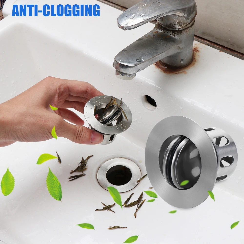 6cm Universal Wash Basin Bounce Drain Filter With Anti-clogging Basket Bathroom Stainless Steel Sink Drain Plug Stopper