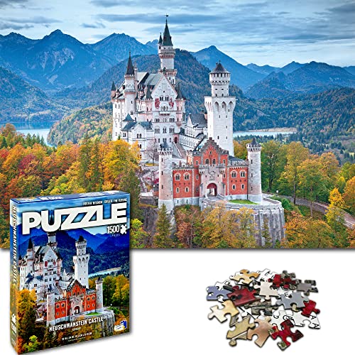 Universal Castle Foil Carta Puzzle 1500 Pezzi Adulti - Castello di Neuschwanstein Germania - Romantic World Foto Puzzle Paesaggi - Puzzle Mappamondo