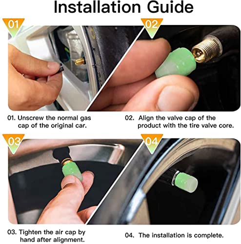 【Easy Installation】Easy installation without tools. Just screw it onto the tire valve stem. It is easy to install or remove when you want to check the air pressure.