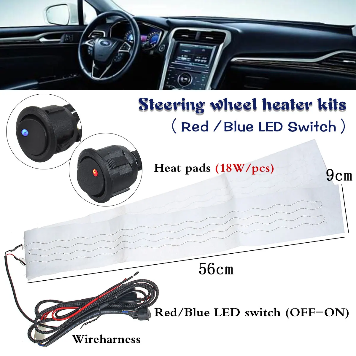 Universal Car Front Flocking Cloth Steering Wheel Heater Kits Car Heat Pads Car Heater Blue/Red Light Switch 56cm x 9cm