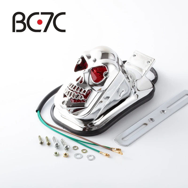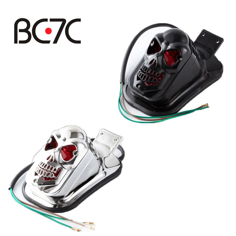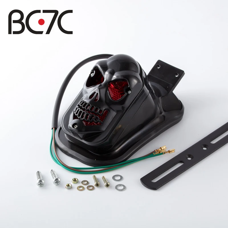 Universal Motorcycle Black Skull Taillight Brake Lamp With License Pate Bracket Accessories For Harley Chopper