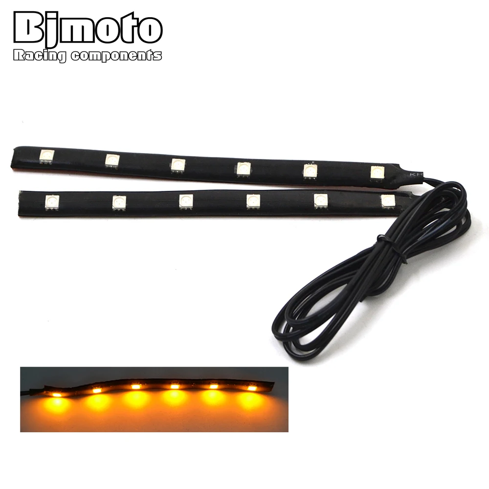 2PCS Universal Motorcycle Strip Turn Signal Indicator Blinker Light Amber 6 LED 12V Strip Light For Honda Kawasaki Yamaha Suzuki