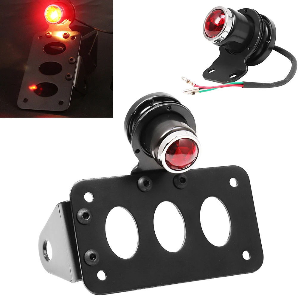 Universal Side Mount Black Motorcycle Brake Tail Light License Plate Bracket For Harley Chopper Bobber