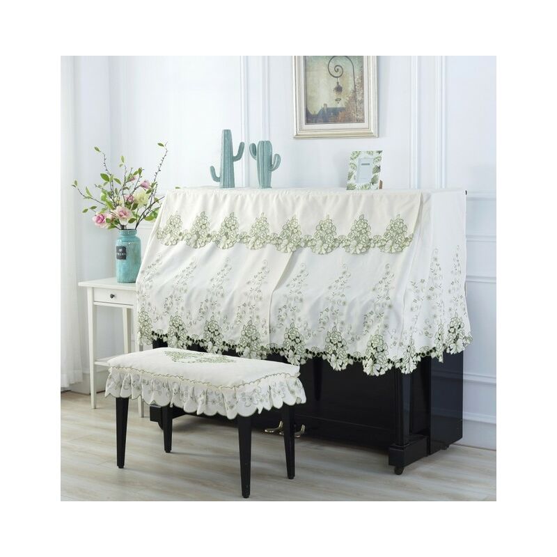 Universale 148-154CM ricamo campagna Flowe Piano coperchio antipolvere strumento antipolvere per pianoforte verticale,Luce Verde,38-58 Seat Cover