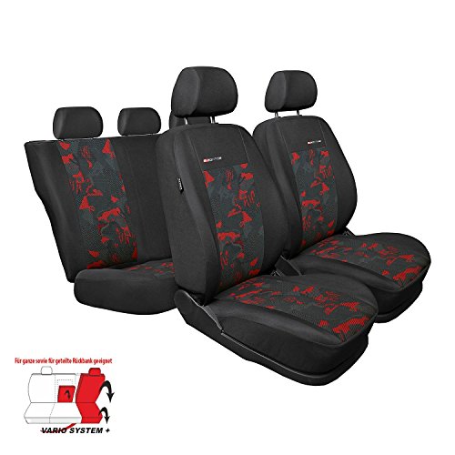 Universale Completo Set Coprisedili per auto copri sedili Set sedili auto, coperture sedili auto cuscini sedile di protezione, Elegance, Set Completo di 5 sedili, Rosso