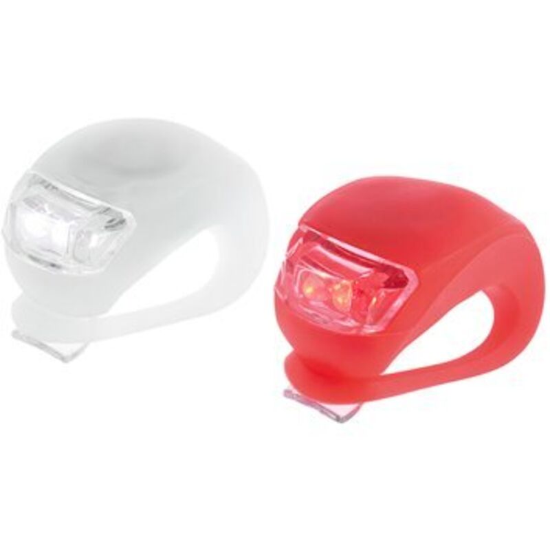 Set 2 luci LED universali per bicicletta - Luce frontale bianca a 2 led e luce posteriore rossa a 2 led - Corpo in silicone flessibile - 3 funzioni (luce fissa, lampeggiante, lampeggiante rapido) - Alimentazione: 2 batterie CR2032 per luce (incluse) - Con sistema per agganciare alla bicicletta - Cf. in blister Confezione: 1 BL Kit 2 Pz.
