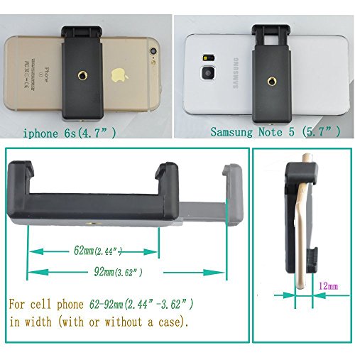 Universale treppiede con filettatura 1/4 pollici per smartphone (larghezza o lunghezza è di 62 - 92 mm), ideale per scattare foto o filmati con il smartphone