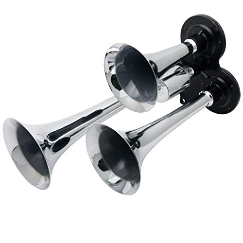 Nome dell'elemento: MASO 12 V 24 130DB Universale Corno D'aria Kit Super Forte Corno Argento Metallo Quad 3 Tromba per Auto Camion Treno Compatto