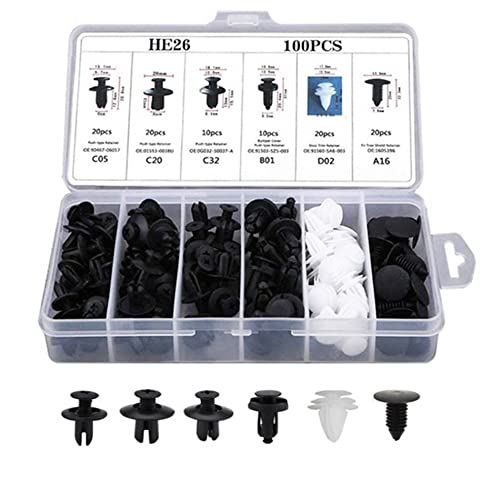 Clip Auto Universali in Plastica, 100 Pezzi Clip Fermo Parafango Auto, Utensili per Clip di Fissaggio per Auto, Fermo Rivetti Perno Paraurti Clip, con Utensile, per Strisce Sigillanti Autoveicoli