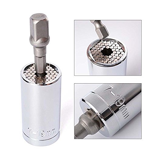 Si tratta di una presa di corrente universale che si adatta immediatamente ai dadi esagonali, agli occhielli, ai ganci, alle viti e alle teste dei bulloni. Adatti dadi standard da 1/4 a 3/4 pollici e metrici da 7-19 mm e teste delle viti