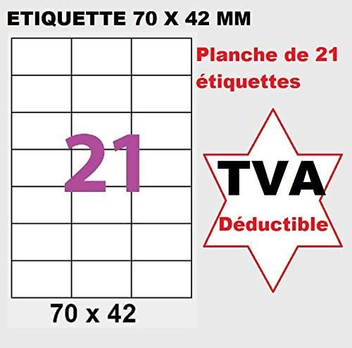UniversGraphique, 1050 Etichette Adesive su Fogli A4, Colore Bianco, 70 x 42.3 mm, Fogli 50, 21 Etichette per Foglio