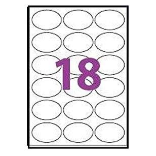 1800 etichette ovale, dimensioni 6.35 x 4.23 cm, fogli A4. Fogli adesivi bianchi opachi.