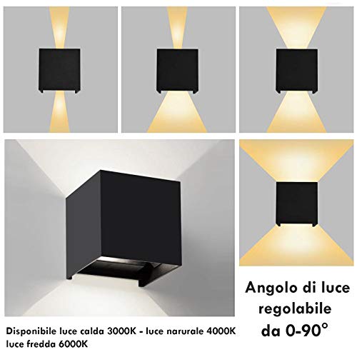 UNIVERSO - Applique IP65 12W Led Lampada moderna Parete Interni / Esterno Muro in Alluminio Angolo luce regolabile Su e Giù IP65 Impermeabile [Classe di efficienza energetica A++]