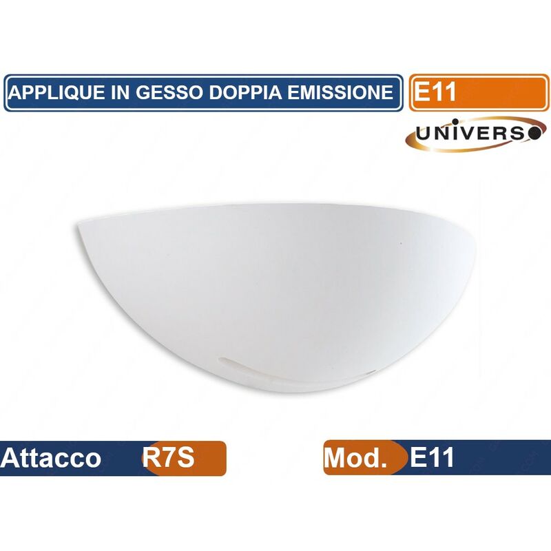 Applique a forma di mezza luna da parete con doppia emissione luminosa. Realizzato in Gesso di colore Bianco . Applique da interno adatto ad essere installato su qualsiasi superficie, con la possibilità di essere verniciato ed ottenere un effetto omogeneo. Dotato di 1 portalampada R7S, compatibili con tutti i tipi di lampade (R7S) con potenza max 50W. Facile da montare grazie alla connessione tramite morsetti a vite e portalampada integrati. Nella confezione sono compresi portalampada R7S, la piastra per il fissaggio e 2 viti con tasselli per il fissaggio a muro. Dimensioni: 310 x 125 x 95mm.