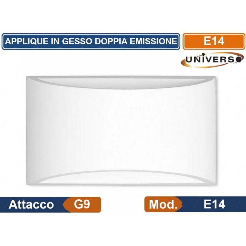 Plafoniera Applique in gesso a montaggio superficiale per lampadine G9 (1x G9 non inclusa nella confezione). Design ultramoderno con emissione luminosa superiore ed inferiore. Ideale per creare luci soffuse, giochi di ombre e chiaro-scuro. Adatto a tutti gli ambienti interni grazie al suo grado di protezione IP20. Realizzato con ottimo gesso ceramico verniciabile in modo da soddisfare le proprie esigenze e renderlo adatto a tutti gli stili, dai più moderni a quelli classici. Aderisce perfettamente alla pittura ed allo stucco evitandone il distacco e la creazione di crepe. Caratterizzato da un'istallazione semplice e veloce è compatibile con tutti i tipi di lampade con attacco G9 (max 25W). Nella confezione sono compresi un portalampada G9, una staffa per il fissaggio a muro e del portalampada e le viti per il fissaggio. Dimensioni: 200 x 120 x 85 mm.