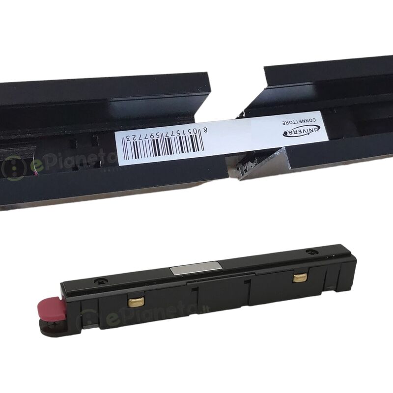 Connettore a bassa tensione (48V) per binario monofase magnetico. Realizzato in PC e rame nero.