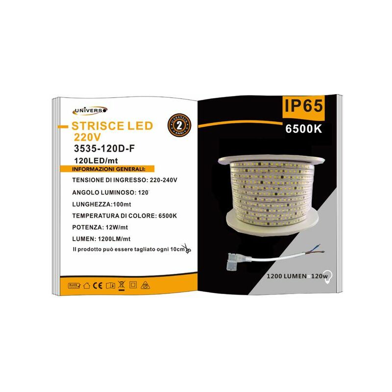 Striscia Led 12w 220V 120 Led /mt Luce Calda 30000k 3535-120D